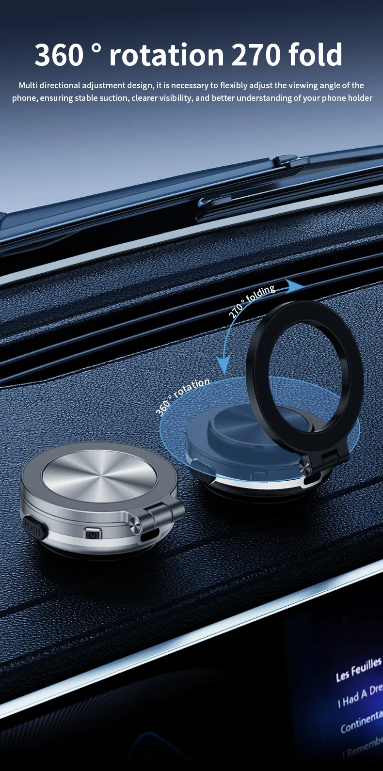 Vacuum Suction: The vacuum suction feature ensures a firm grip on flat surfaces, providing stability for your device.